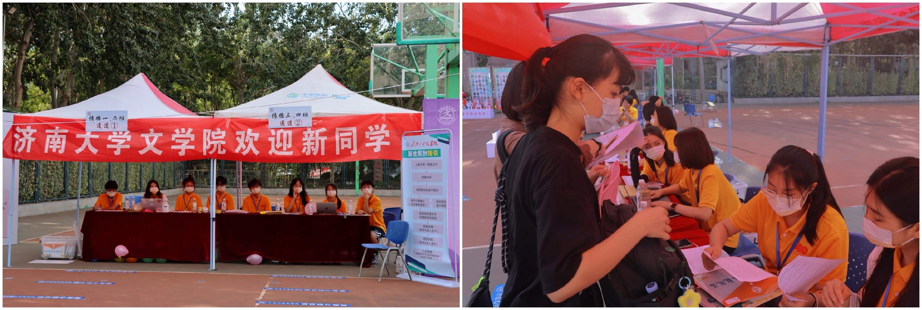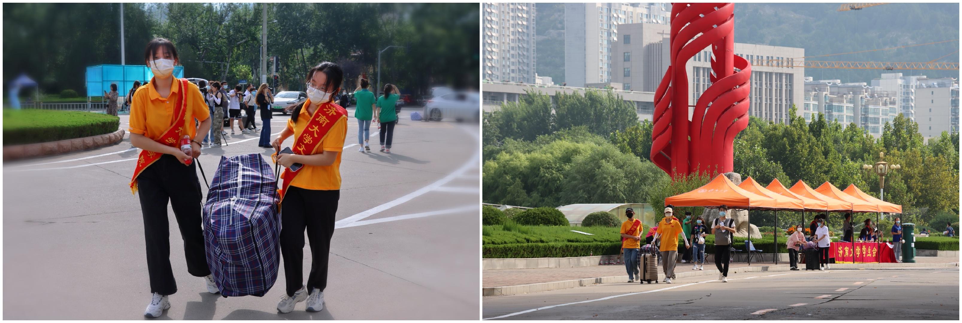 的“橙色身影”随处可见,志愿者在东南门帮新生拿行李,引领新生做核酸、到达报到处,各班班助充满热情,指导新生办理报到手续,整套迎新流程衔接顺畅,井然有序。老师们跟进迎新工作,时时掌握迎新情况,并带领新生参观考研光荣榜并在拍照地点打卡留念。贴心的服务让初来乍到的新生倍感温暖。