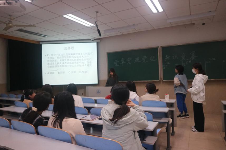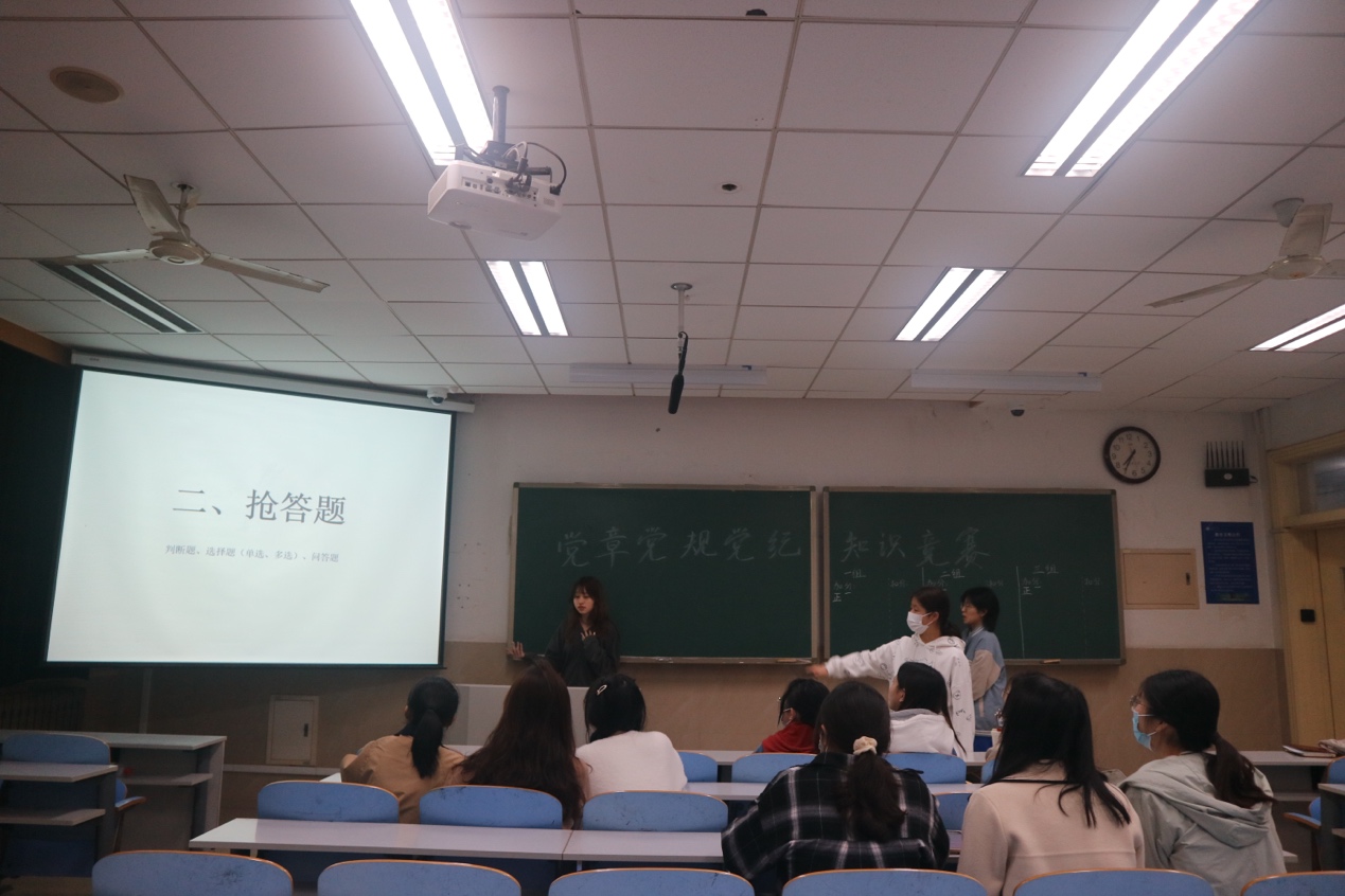 本次活动一共分为必答题、抢答题、风险环节三个部分,题型包括选择题、判断题、填空题、案例分析题等多种题型。在整个答题过程中中,所有同学都认真对待、细致作答,充分展示了入党积极分子对党章党规的知识储备能力,达到了以考促学的良好效果。