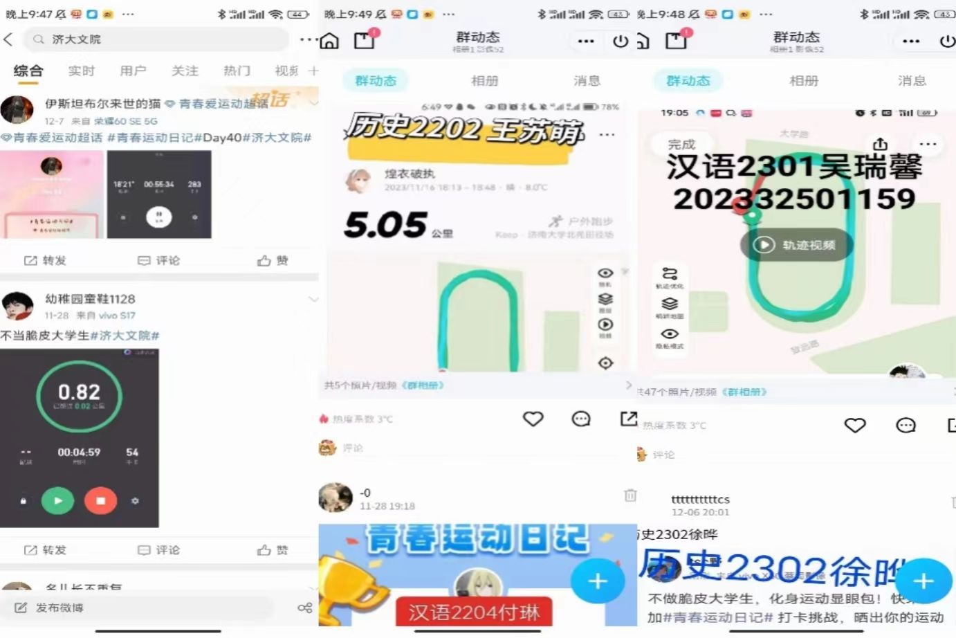 在本次打卡活动中,我院徐晔、付琳、刘春辉等多名同学积极参加,在“互联网+”的时代背景下创新体育锻炼模式,在同学们的共同坚持和努力下养成了运动的良好习惯,同学们每天坚持运动的同时坚持在活动平台和活动群内打卡、发布寻找运动搭子的帖子,鼓励身边同学一起运动,在运动中实现价值。