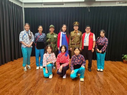 在李其仁老师的指导之下,团队成员们换上红军服装,手握大刀长枪,变身英勇的红军战士。在身临其境出演红色经典故事的同时,我们用心体会着那段光荣历史,共同追忆那些激情澎湃、跌宕起伏的革命岁月。此时,每个人心中都充溢着红色精神,每个人对于红色文化都有了更加深刻的理解。铭记历史,努力奋斗,砥砺前行。在沉浸式的演绎中,实践队员们回眸往昔,了解了共产党在革命道路上的艰辛,体会了英雄人物对国家和社会的贡献,更学习到了红色文化中的百折不挠、勇往直前的可贵品质;同时也让大家深深感受到了美好生活来之不易,心怀感恩,向梦想起航。