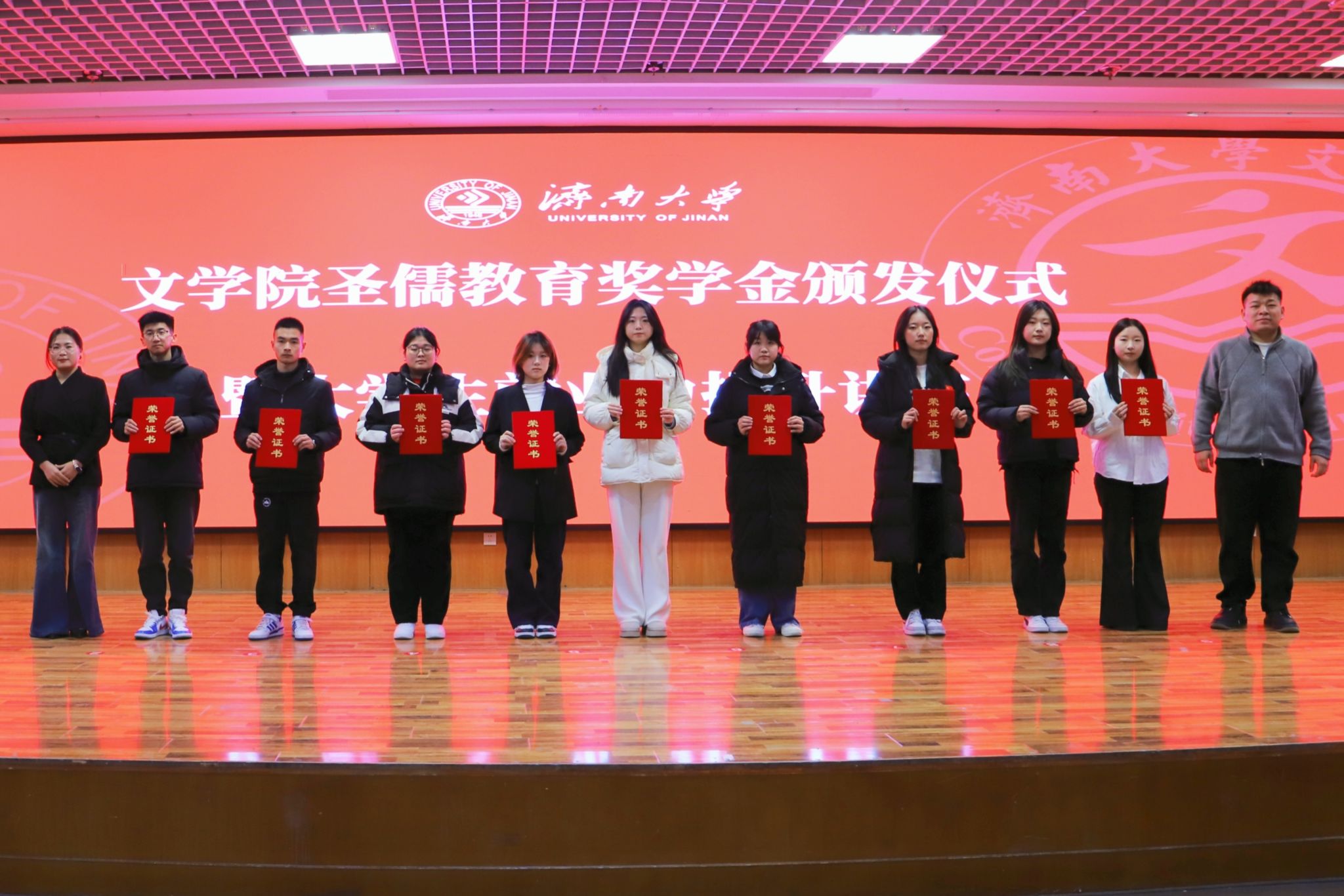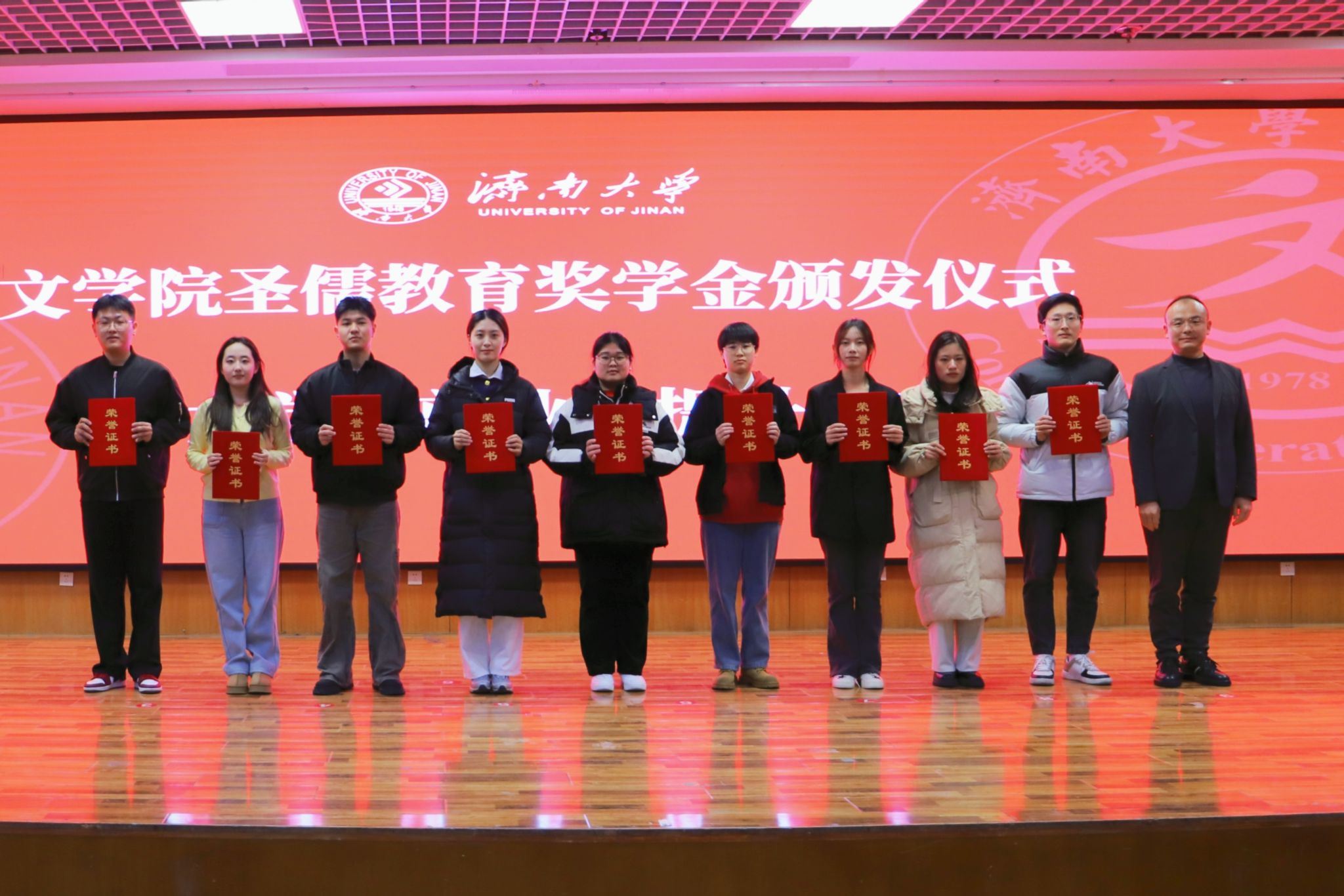 学院领导及圣儒恒信(山东)教育科技有限公司嘉宾为获奖集体、个人颁发圣儒教育奖学金证书。