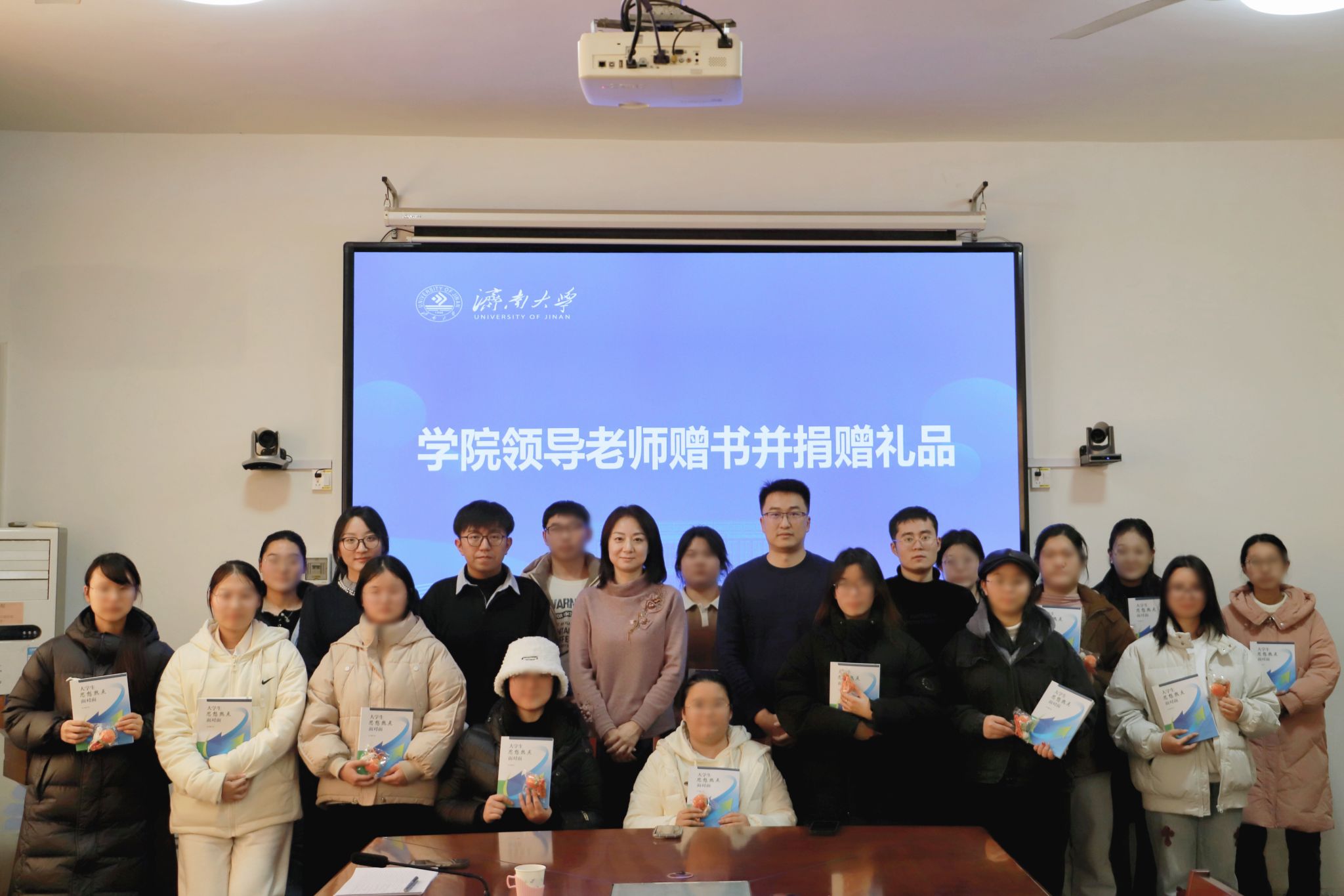 会后,学院领导老师为参会同学们送上书籍和礼物,寄以温情赠语,以此勉励同学们向好向善而行,不坠青云之志。