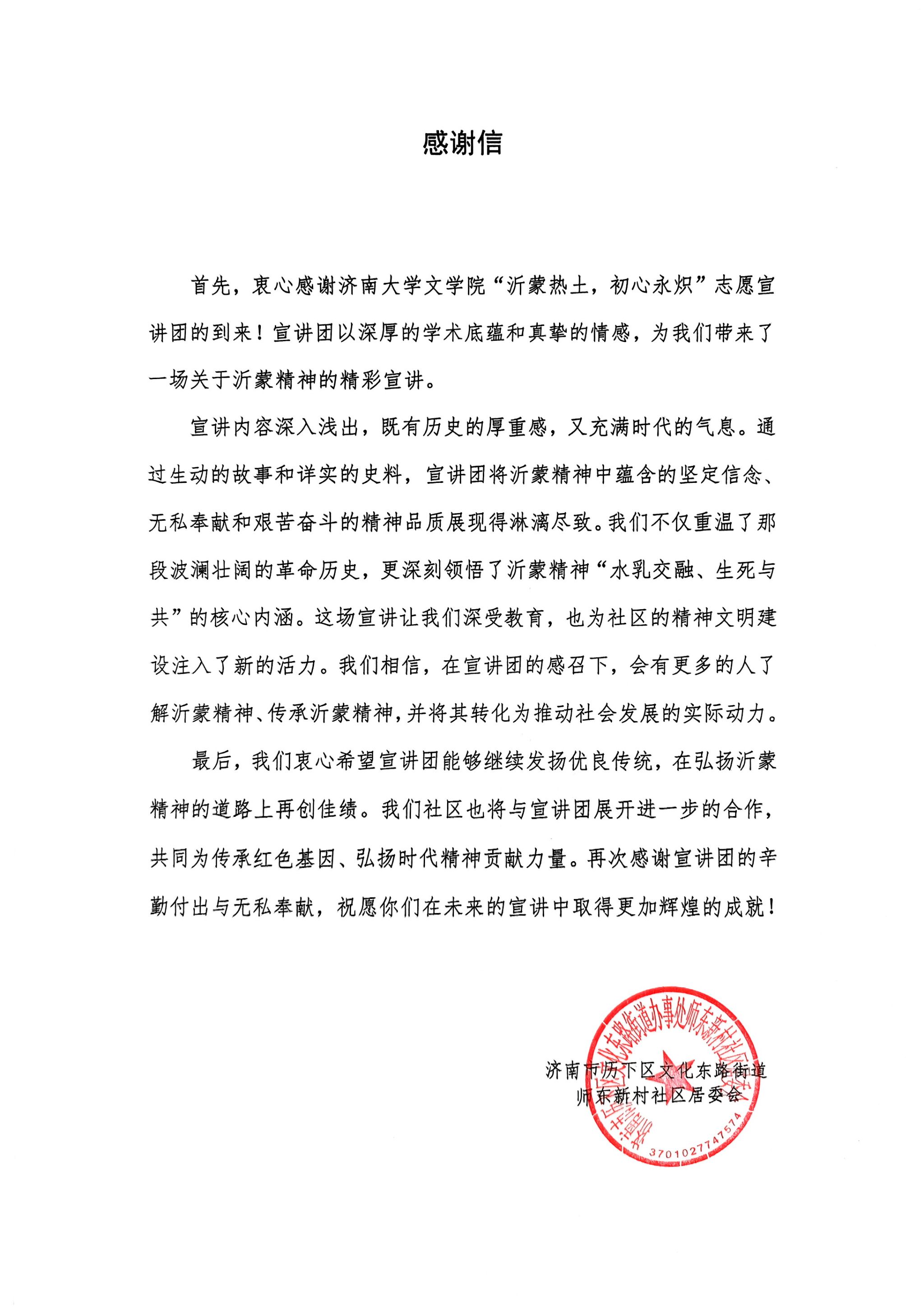 “沂蒙热土,初心永炽”宣讲团将继续不忘初心,砥砺前行,深化落实宣讲工作。我们将以更加饱满的热情,走进社区,紧密结合受众特点和时代需求,不断创新宣讲形式,拓宽传播渠道,让“沂蒙精神”在新时代焕发出更加璀璨的光芒。