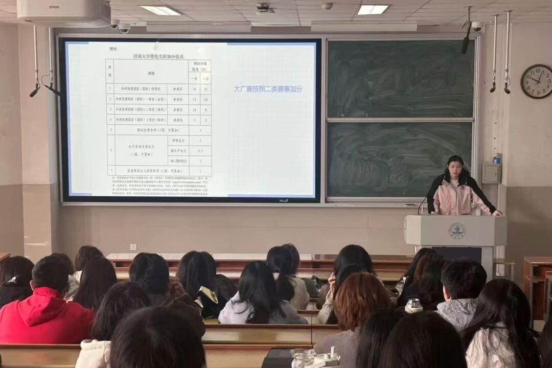 分享会上,胡千羽、刘小璐、王依诺、李筱影及侯添润五位优秀学生代表结合自身经历倾囊相授。他们系统梳理了各专业的学习特点与发展前景,围绕如何参与高水平竞赛、准备推免材料、高效备战考研等实际问题,分享了宝贵的一手经验和实用技巧,鼓励大家尽早树立信心,将长期的学业目标拆解为可执行的短期步骤,规避常见的发展误区。