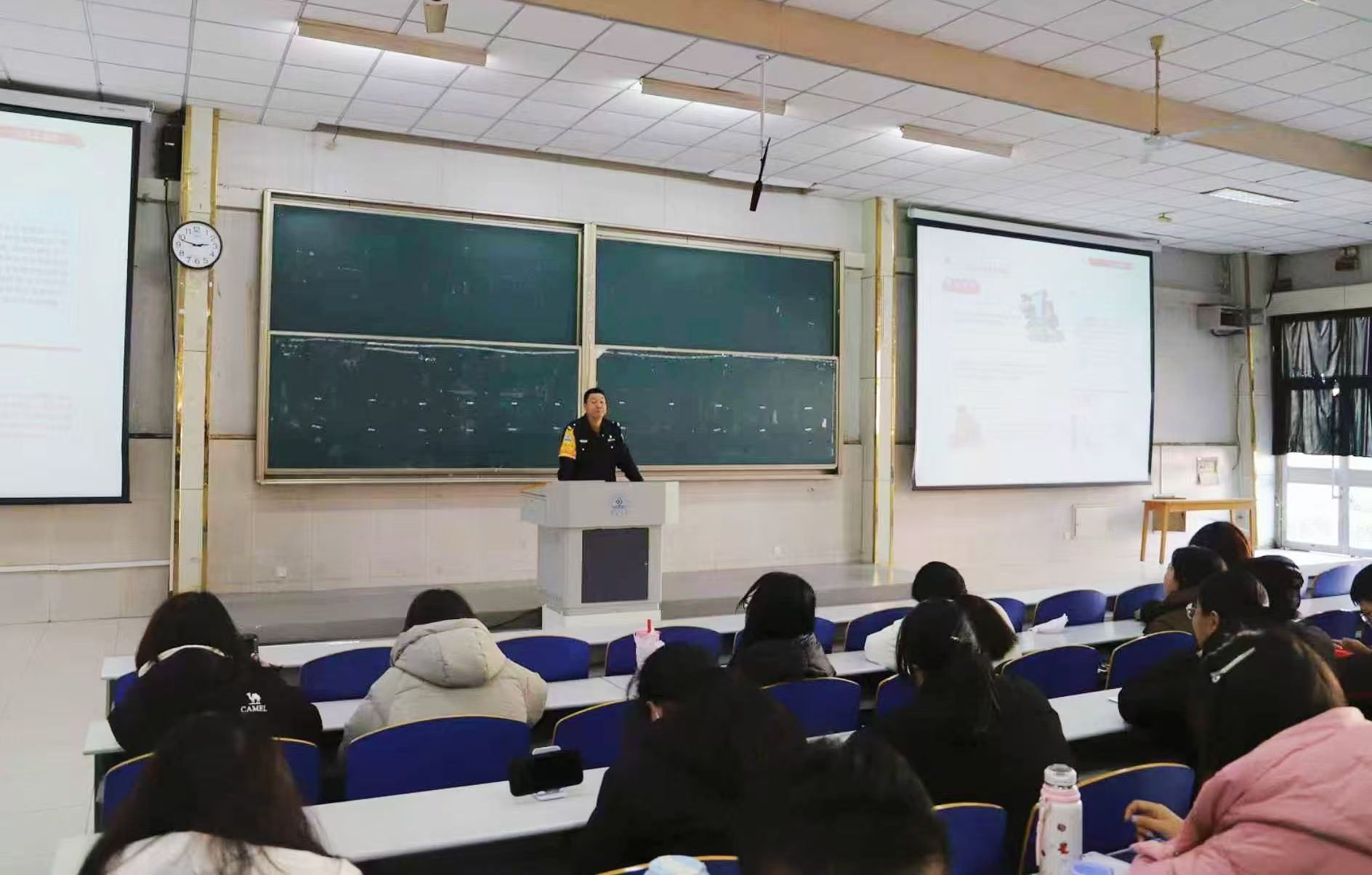 除此之外,李荣光还从健康安全、治安安全和消防安全等方面为新生进行了全面的安全知识科普。他强调了食堂比外卖更有保障,运动减少疾病,重视溺水问题,严禁打架,严禁使用大功率违规电器,离开宿舍时人走断电等重要的安全知识。他还强调“平安一生是对父母养育之恩的最大回报”,结合高校宿舍火灾案例,让同学们深刻认识到不重视自身安全所造成的严重后果。