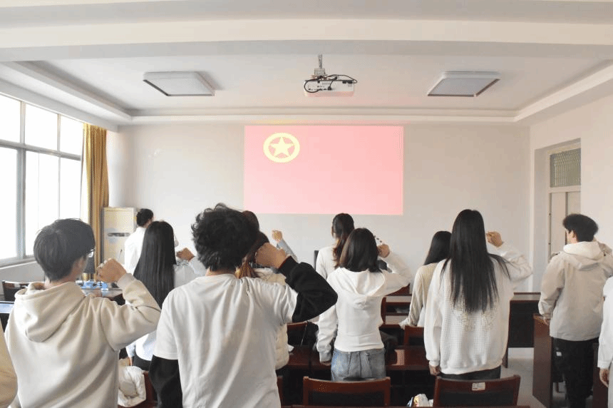 仪式最后,全体新团员肃立在团旗前,身姿挺拔,庄严地举起右手、握拳过肩,以洪亮而坚定的声音许下青春誓言。誓言铿锵有力,承载着新团员对团组织的向往,彰显着新时代青年奋斗的坚定信念。
