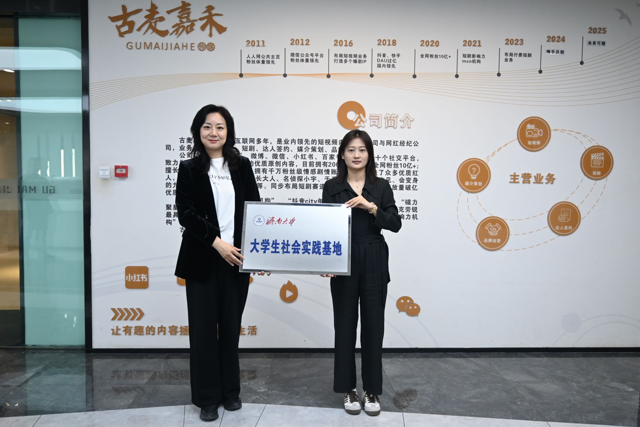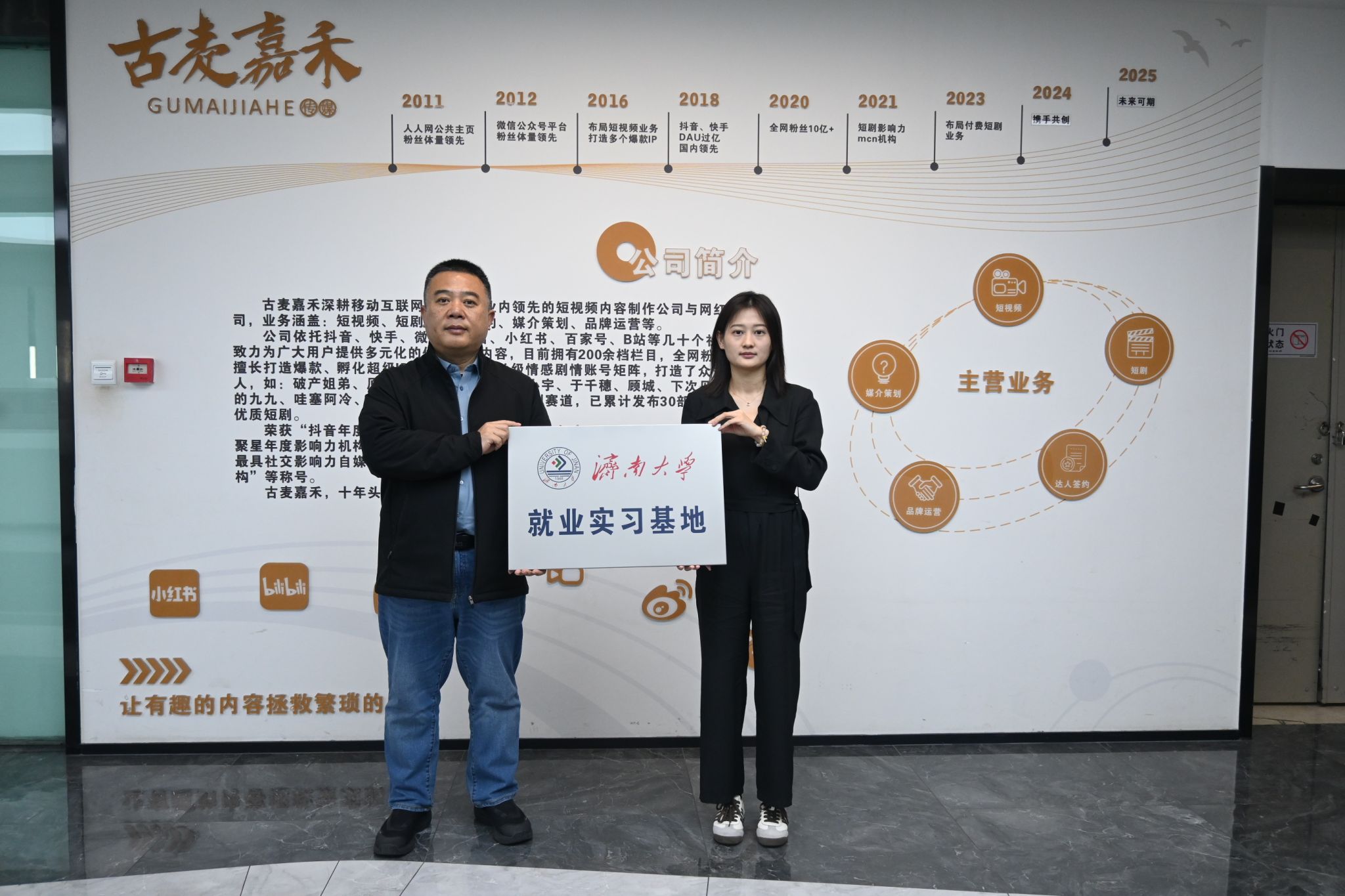 在企业走访过程中,学院一行实地参观企业办公环境和运营情况,详细了解企业发展历程、主营业务、人才需求及岗位设置情况。青岛古麦嘉禾科技有限公司成立于2018年3月,是国内头部MCN机构及数字营销公司,在短视频内容、短剧、媒介策划、品牌运营、达人签约等多个业务领域都具有极大的影响力和专业度。青岛杠上开花网络科技集团有限公司是目前国内知名、行业领先的坚持原创内容的新媒体公司,公司于2019年11月布局短视频,现已打造出一支集内容生产、IP运营、商业变现于一体的完整生态链条。