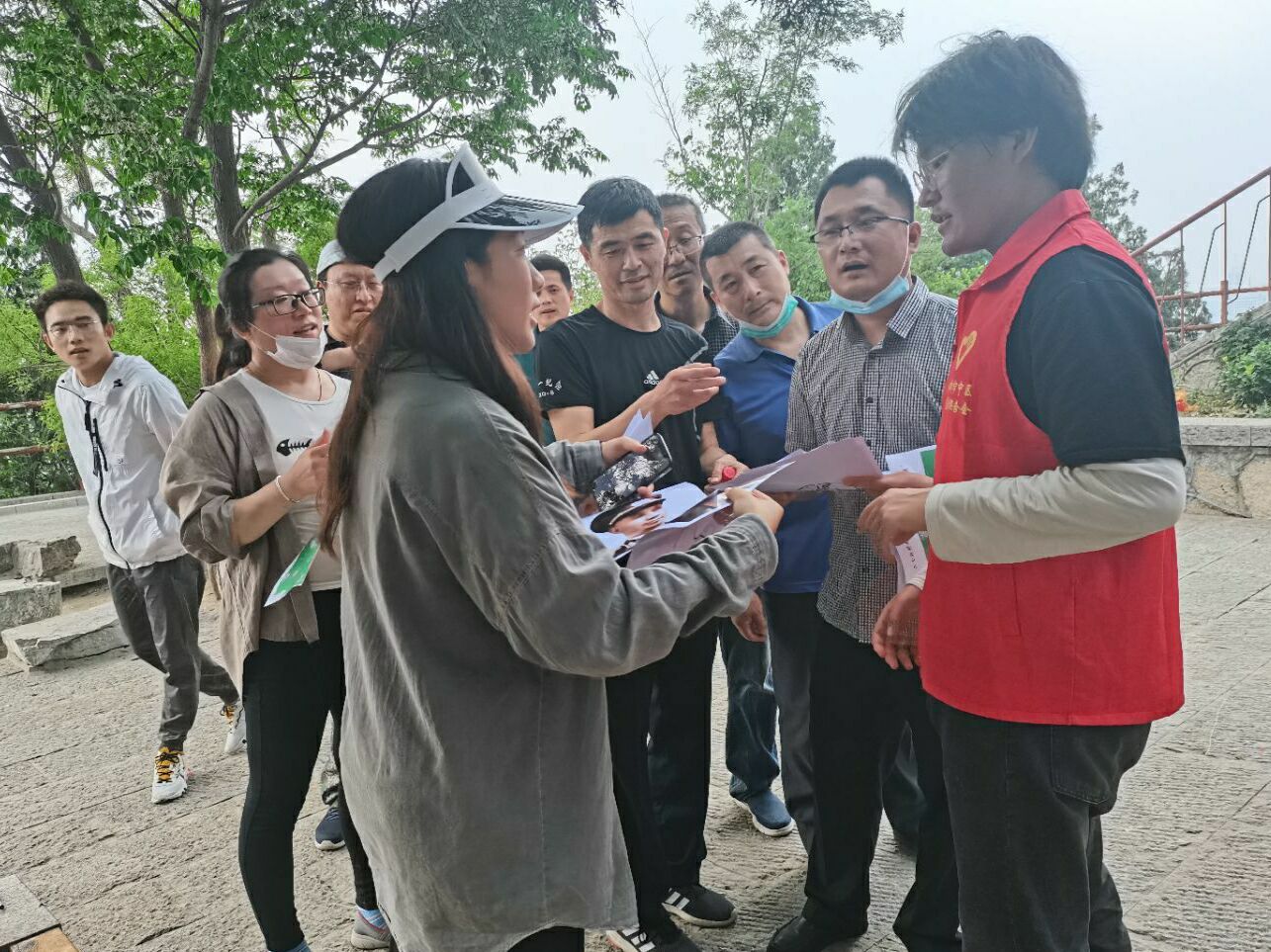 活动开始时,活动负责人首先将参与人员分组,公布任务环节,发放打卡地图。随后,参与人员在志愿者的引导下,从山脚奔赴各个任务打卡点。志愿者们耐心讲解活动规则,引导参与者逐步登顶,在徒步英雄山的同时协助参与者完成了打卡活动。本次活动通过“统一战线”“重走长征路”“慧眼识英雄”等项目,把党史知识巧妙融合于趣味游戏之中,“统一战线”“慧眼识英雄”等项目不仅考查党史知识,还考验参与者的团队协作能力;“重走长征路”把网球运动与长征知识相结合,既锻炼身体又丰富内涵。此次活动把红色旅游资源英雄山的主要景点串联起来形成打卡路线,真正做到了让百年党史“活”起来。