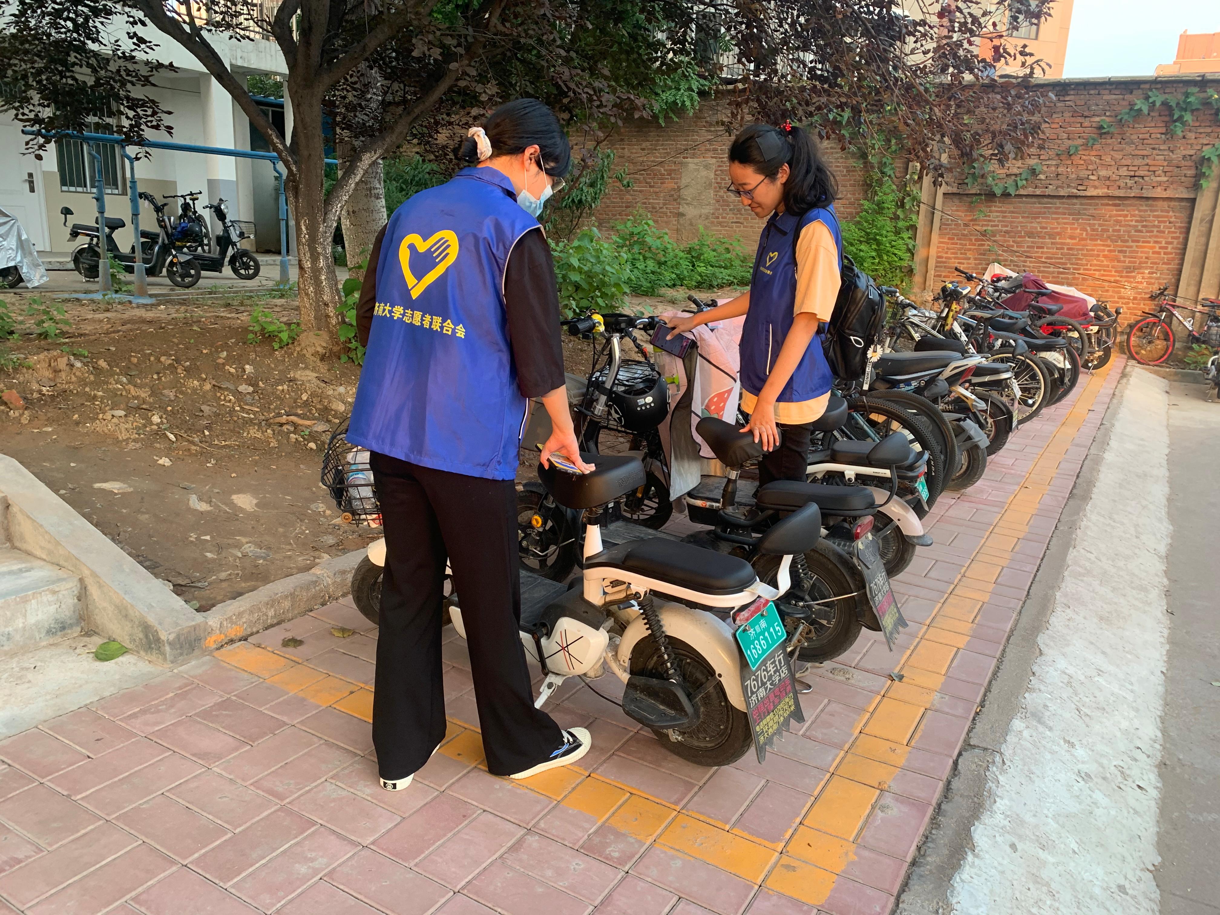 初心志愿者协会于10月2日组织学生志愿者参加本学期在全校范围内开展的校园非机动车百日整治专项行动。
