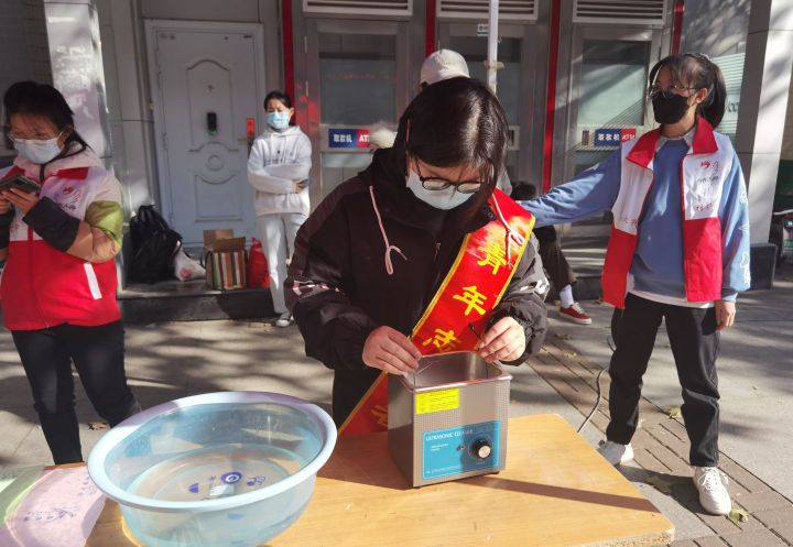 初心志愿者实践队联合材料学院于八食广场举办了“eye护”洗眼镜活动。