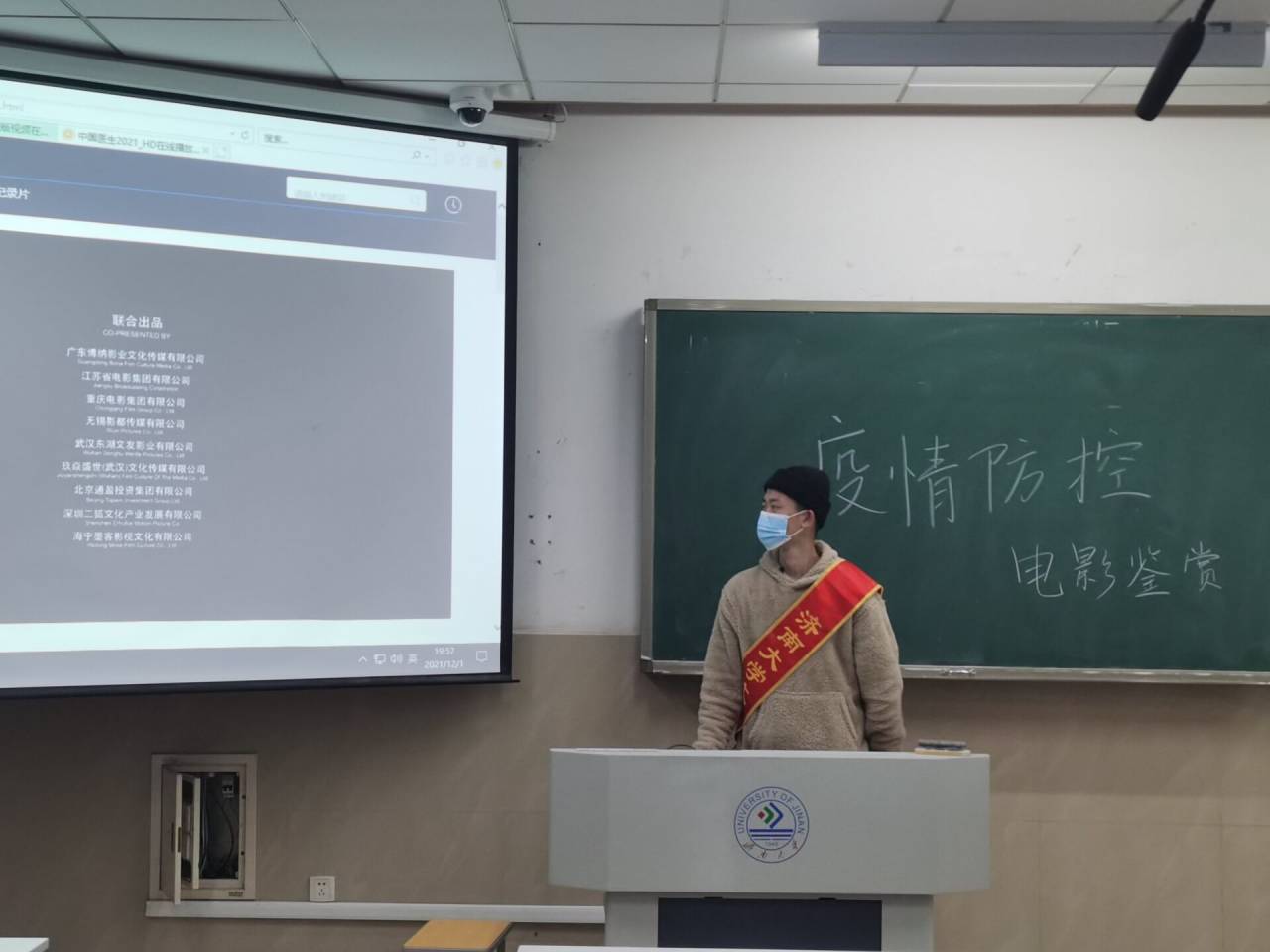 于12月1日19:00在10教320教室开展了防控疫情电影鉴赏活动,全体同学共同观看了抗疫电影《中国医生》。