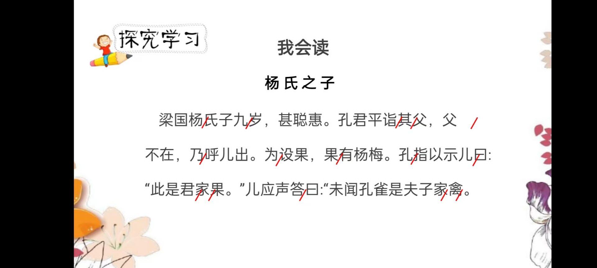 确定参与的是第二场授课,志愿授课小组由主讲人史立新和助教陈靖宇、胡千羽三人构成,为学生们讲解课文《杨氏之子》及其相关知识。活动伊始,志愿者们经过细致讨论确定了本次授课的教学方案。在课堂中,志愿者们以领读课文《杨氏之子》开启了本次志愿活动的篇章,为学生们能够提高学科素养,进一步详细地解读了生字注音和含义,拓展了《杨氏之子》相关的知识,希望学生们能够学习到课文所传递的智慧道理。在不断的课堂互动中,师生的配合性增强,同学们热情洋溢,积极活跃。最后,志愿授课以和学生们共同诵读《杨氏之子》和相关的一些名言警句圆满告终,活动反响良好。