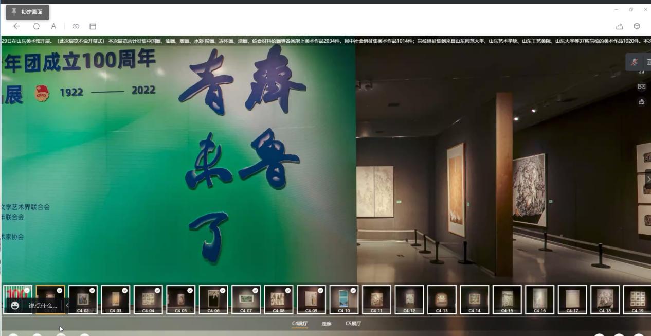 组织学生线上观看学习了“齐鲁青未了”庆祝中国共产主义青年团成立100周年系列作品展,学生会全体成员和各年级团支书参与本次活动。