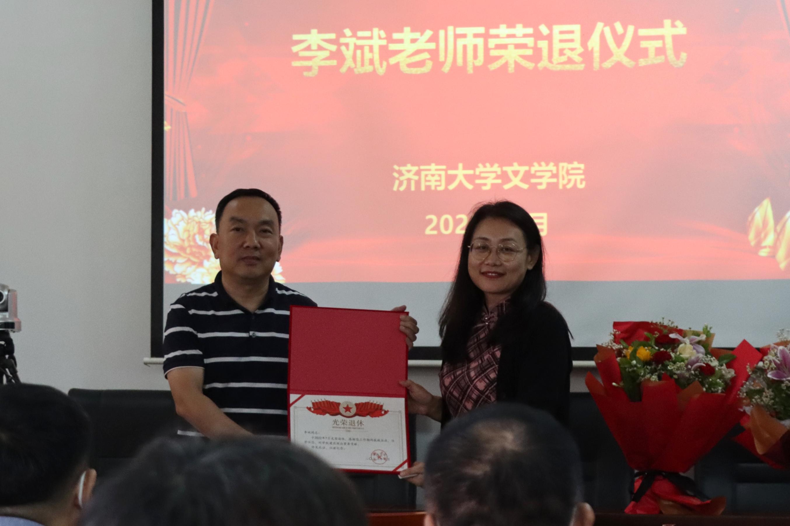 在三教418会议室举行了李斌老师荣退仪式。仪式由党委书记陈卫东主持,张雅静老师代表青年教师为李斌老师敬献花束,张兵院长为李斌老师颁发荣退证书。水果派av