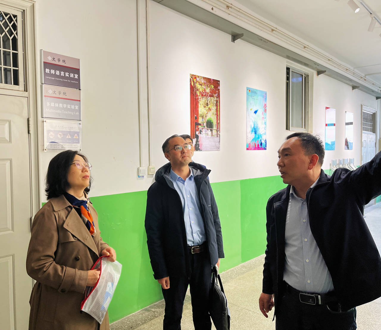 会后,副校长王霞一行参观了学院虚拟演播室、教师语言实训室和文化长廊,对学院专业文化建设予以高度肯定。