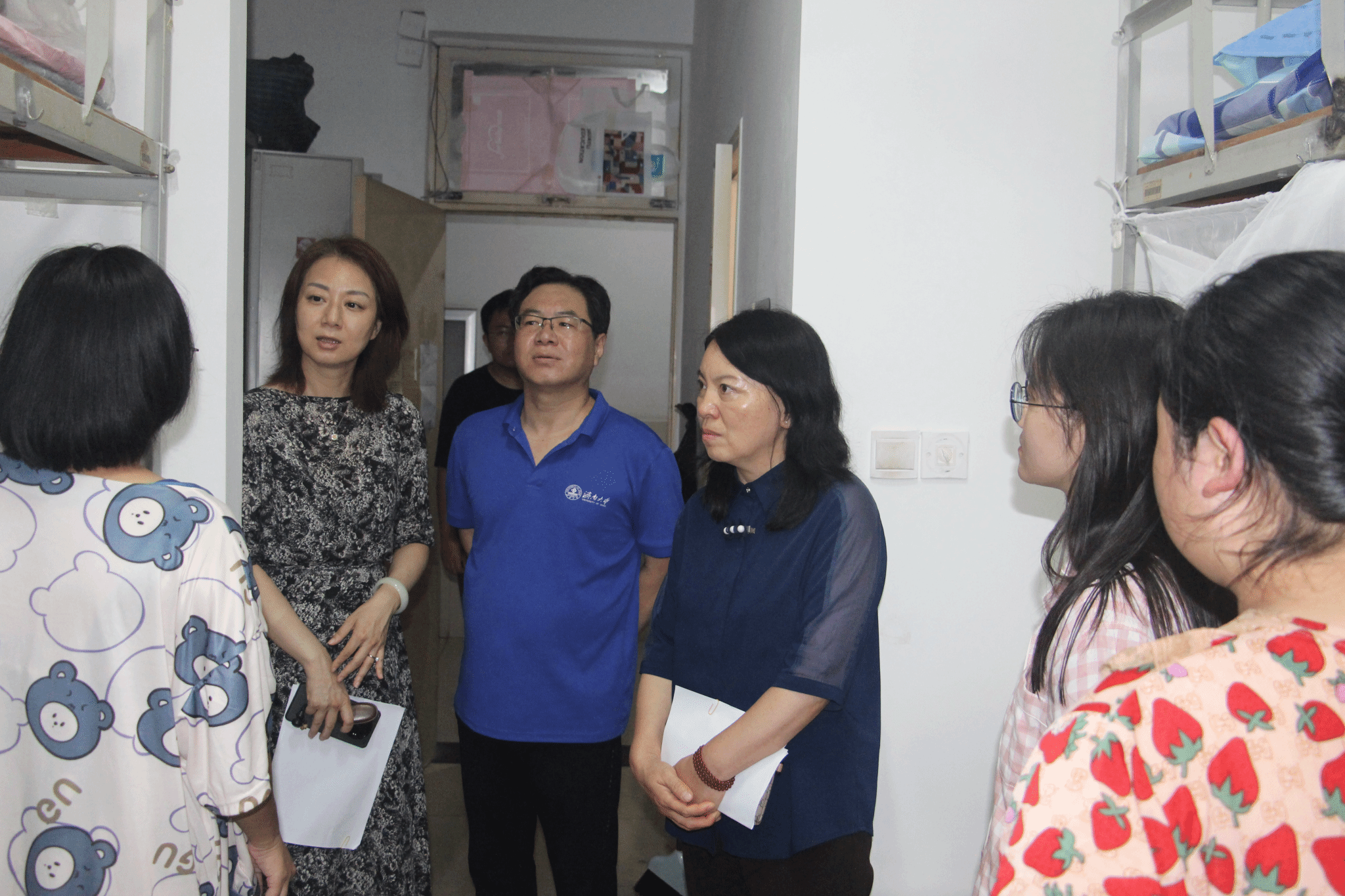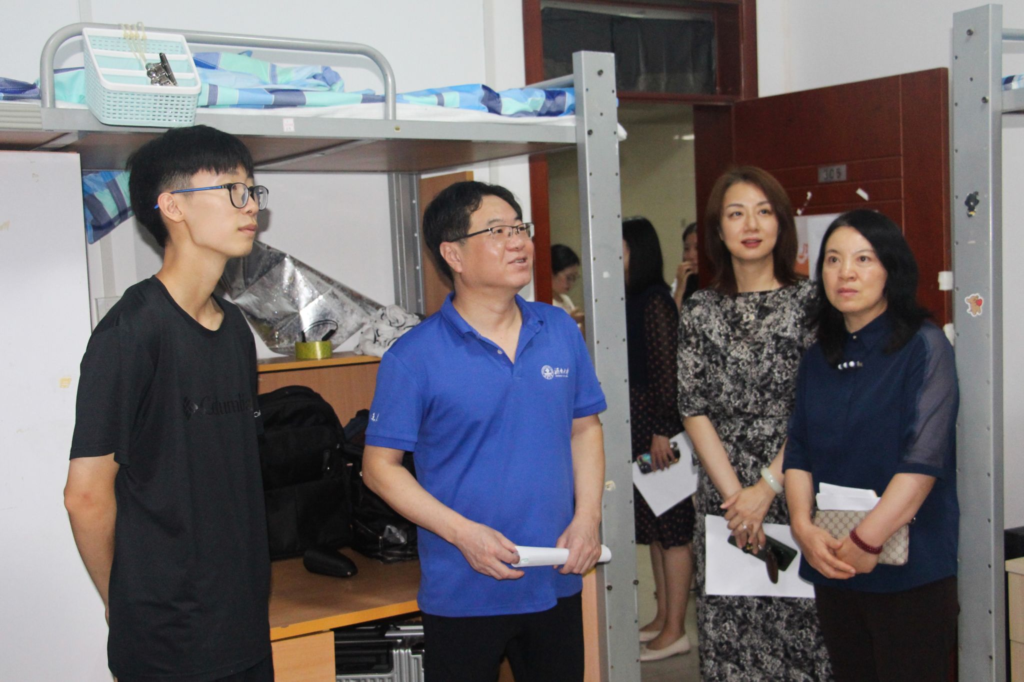 党委书记董海军,院长范丽敏,党委副书记、副院长潘颖及全体辅导员、新生班主任一行前往宿舍看望新生,耐心细致地了解新生入学报到与生活适应情况,传达了学院领导和老师对同学们的关心和关爱,提醒同学们注意自身安全,互相之间多沟通、多交流,遇到困难及时与辅导员、学院联系,尽早适应大学生活。