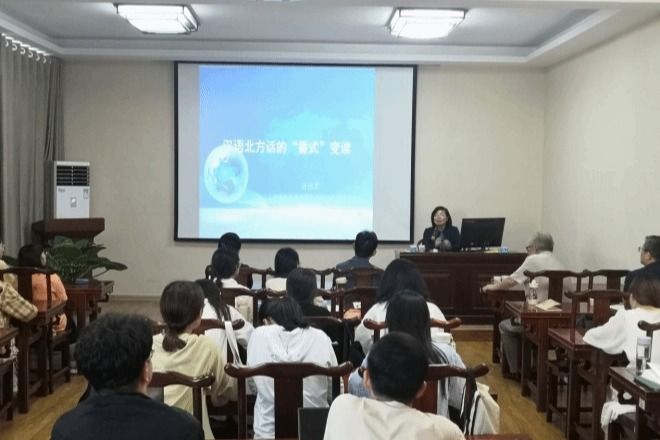 随后,孙伯君研究员就汉语北方话的“番式”变读问题展开讲座。她首先介绍了番汉对音研究法,梳理了学界的研究情况;其次具体讨论了“番式”变读的几个例子,如契丹语、蒙古语中的非系字变读,阿尔泰语系精组字的变读,日母字的番式变读,入声字的演变与民族语言的关系等;最后孙伯君研究员就民族语言在文物判定中的作用作了总结,并以飞来峰上六字真言的例子展示了民族语言在文物判定中的应用。