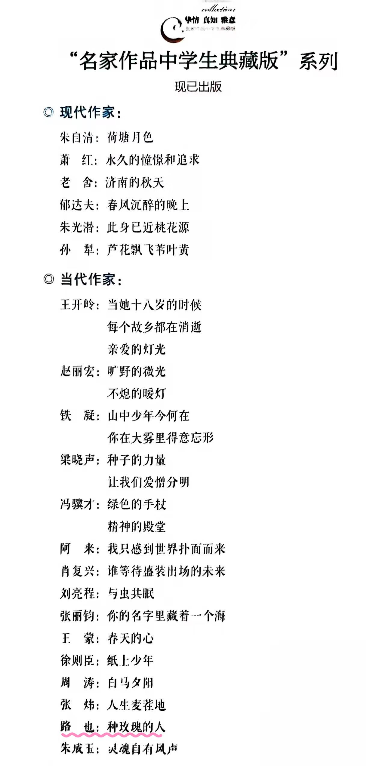《种玫瑰的人》是一本散文随笔与诗歌的合集,2024年10月由山西教育出版社出版。该书入选一线品版丛书“名家作品中学生典藏版”,丛书选择中国具有思想力和影响力的作家,专为当代中学生精心打造,陆陆续续出版已有十年以上,涉及现代作家有朱自清、萧红、老舍、郁达夫、朱光潜、孙犁等,涉及当代作家有王蒙、冯骥才、张炜、铁凝、阿来、刘亮程、徐则臣、肖复兴等。
