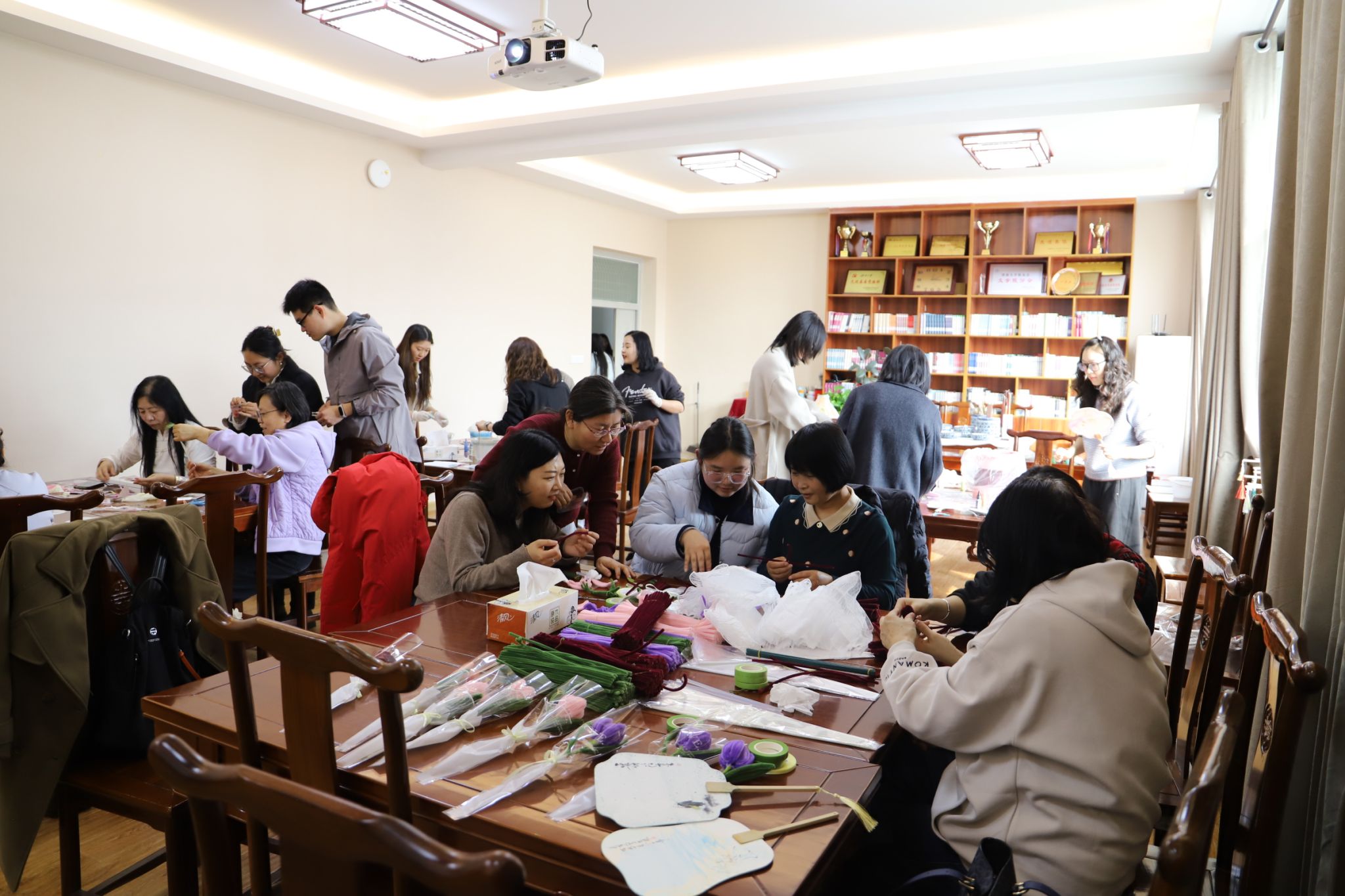 在舜耕书院举办“巾帼绽芳华,奋进新时代”庆祝“三八”国际劳动妇女节非遗文化手作活动。活动包含制作漆扇、书签、扭扭花等,学院女教职工齐聚一堂,感受传统工艺之美,以艺术创作传递节日祝福,用巧手匠心装点春日美好。
