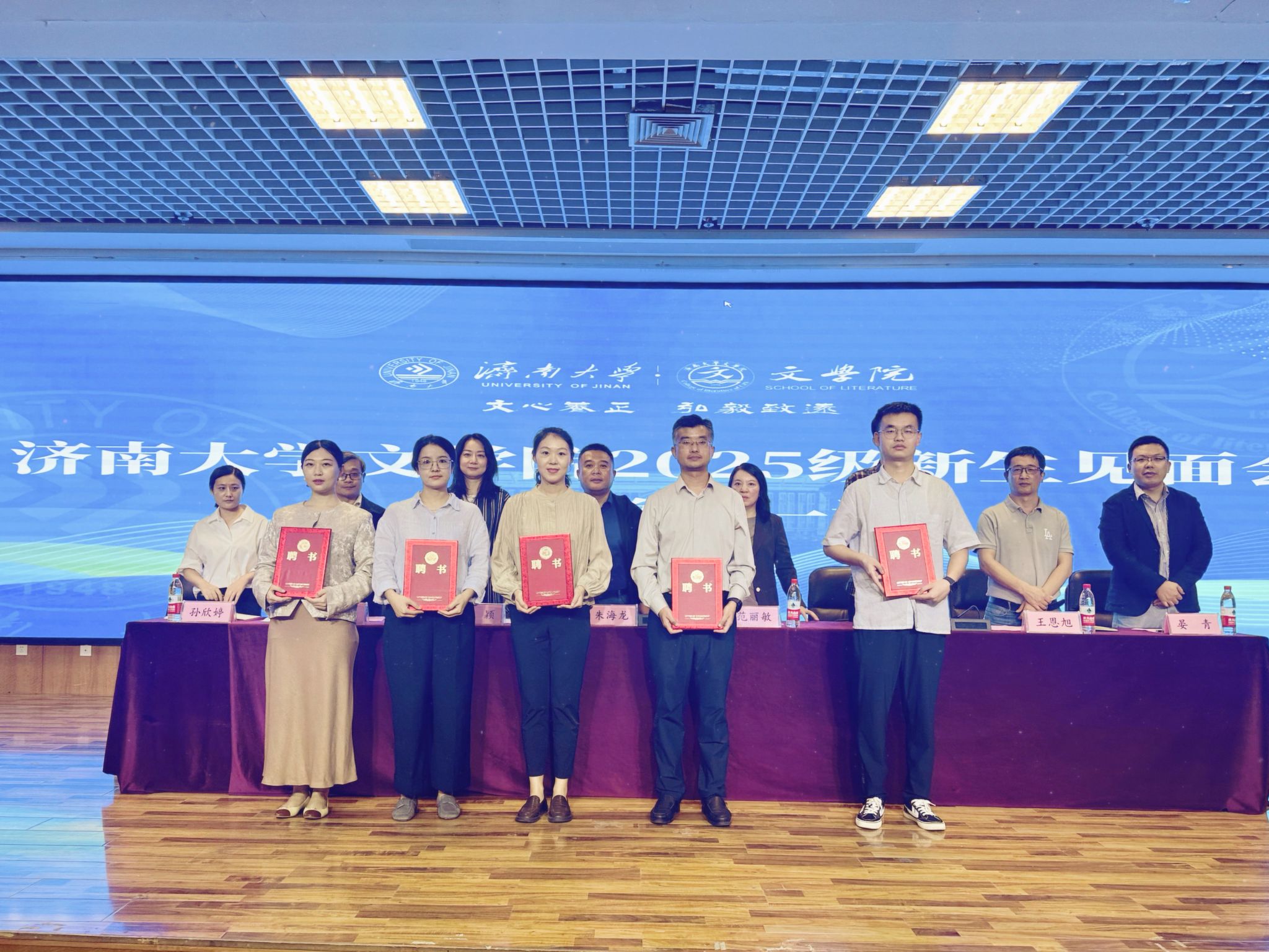 副院长鲁毅宣读《关于聘任张莉等6位同志担任2025级本科生班主任的决定》,学院领导为新生班主任颁发聘书。此次聘任仪式,既是对班主任工作的肯定,也为新生班级管理筑牢了坚实基础。