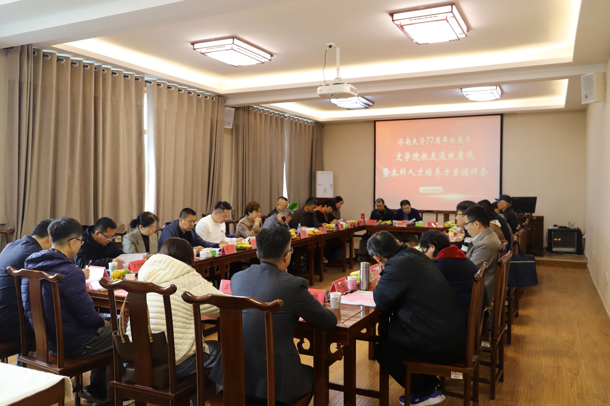 校友返校座谈暨本科人才培养方案调研会于舜耕书院(3J419)隆重举行。学院党委书记朱海龙、党委副书记潘颖、副院长鲁毅、院长助理王恩旭与晏青,同来自各行各业的十位校友及多位教师代表欢聚一堂,共叙情谊、共谋发展,围绕本科人才培养方案的优化升级进行了深入研讨。会议由副院长鲁毅、院长助理晏青共同主持。