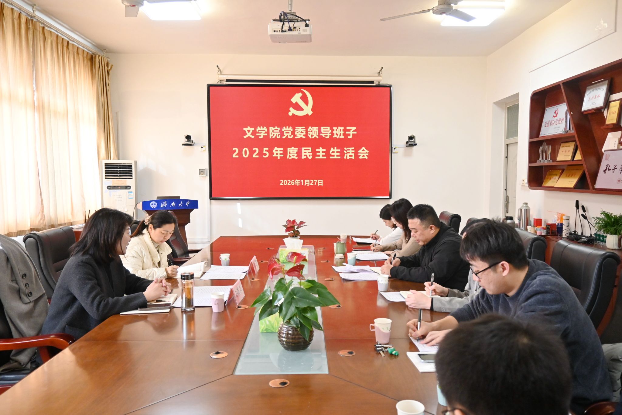 党委在3教411会议室召开2025年度领导班子民主生活会。学校督导组孙菲菲、张蕾到会指导。学院领导班子全体成员、党委委员及相关人员参加会议,会议由学院党委书记朱海龙主持。