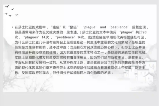 胡教授探讨了与瘟疫有关的文学作品,如《鼠疫》《十日谈》等,定义“瘟疫文学”,即“那些主题与一些有传染性的或是致命的身体疾病以及社会或心理导致的疾病相联系的文学”,并以瘟疫为引,讲述了《罗密欧与朱丽叶》相关戏剧情节;也举出反面例子,细致分析莎士比亚的经历以及他笔下瘟疫产生的原因与大规模传播的条件,通过梳理剧本中的预防与隔离,揭示罗密欧与朱丽叶被隔离的文学隐喻,如“石头的果园围墙、劳伦斯神父的密室、朱丽叶的橱柜”等。“封门闭户”的隔离正是16世纪晚期“伦敦瘟疫爆发时”的标准做法。然后,胡教授从经济、政治、宗教等角度讨论了莎士比亚剧中的暗示隐喻和复杂的瘟疫表述。