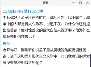 讨论环节,何家兴老师谈了三点感受:第一,经典离我们并不遥远,很多词语沉淀在日常生活中,应善于发现和思考;第二,科学研究应立足于文本,任何结论和观点都应基于扎实的文本对比;第三点,应关注先秦不同学派之间的共同之处。同学们就孟子的“性善论”、孟子与荀子之间的思想异同、孟子“养气说”与管子“精气说”的联系等话题,展开互动。翟教授高度评价水果派av