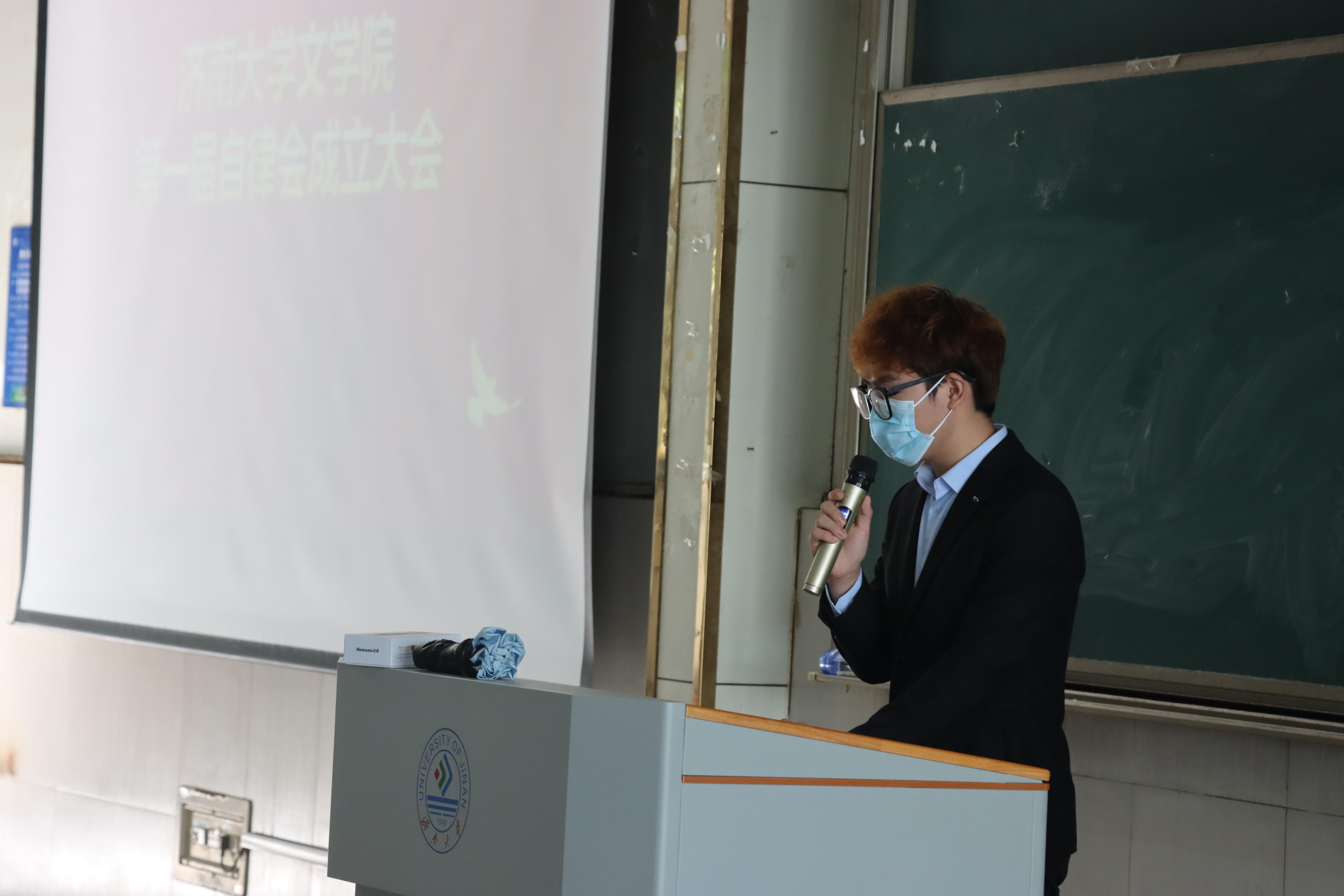 第一届自律会的成立表示祝贺,他说,自律会作为学院学生管理工作的重要组成部分,起着连接校院、联系师生的桥梁纽带的重要作用,自律会成员要以身作则,严以律己,引导广大学生发挥自我教育、自我管理、自我服务的主体作用,做到自律和它律相结合、自我管理和组织管理相结合,自律会成员在工作中眼睛要明、耳朵要灵、腿脚要勤,行为要正、措施要严,奖惩要到位。