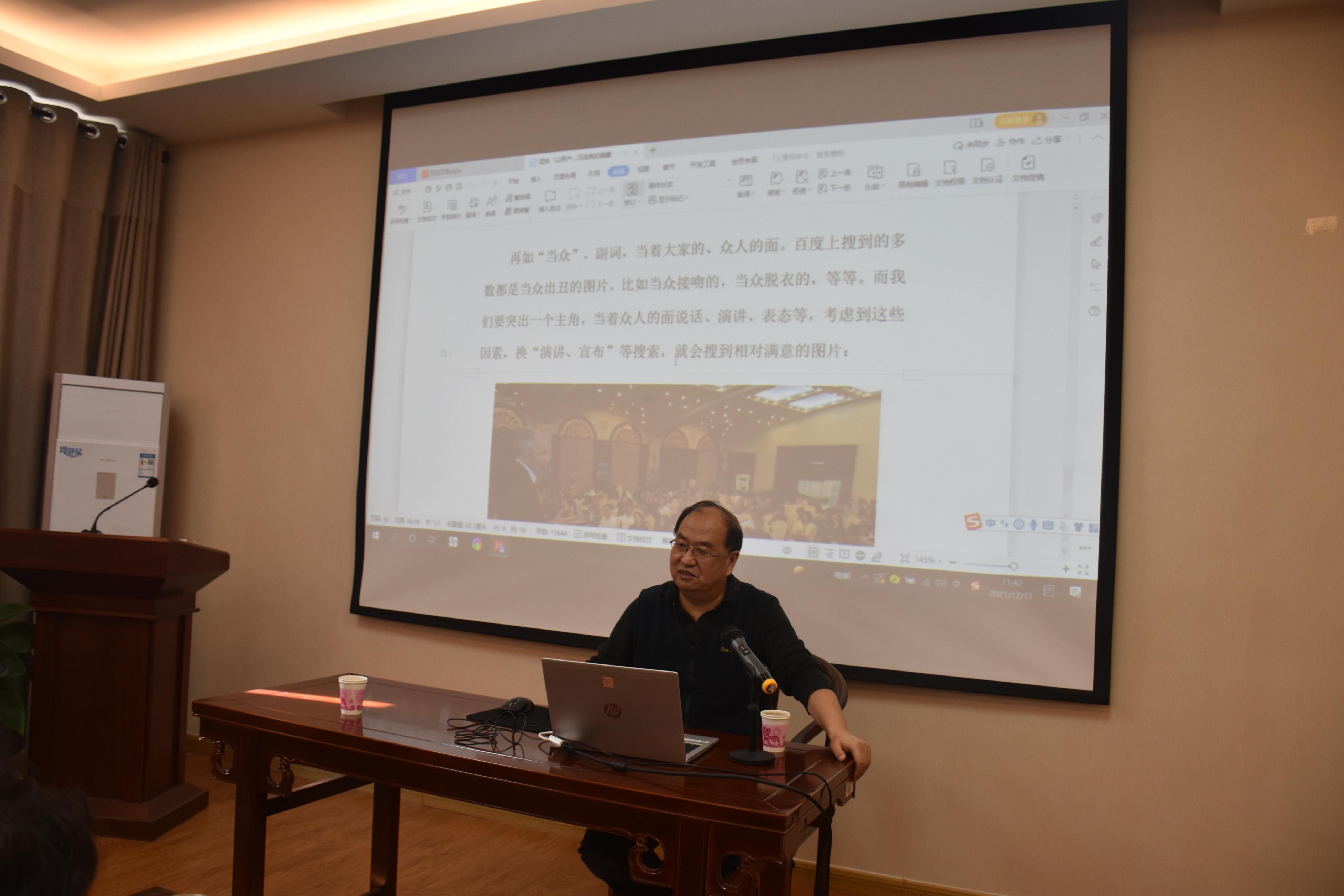 亢教授围绕目前主编的《当代汉语学习词典》展开讲座,明确了本词典不同于以往的学术型词典、规范型词典,而是面向于中小学生的学习型词典;指出本词典坚持“以用户为中心”的原则,在选词、释义、例句选取、词义辨析、语义说明、文化背景等方面尽可能适合中小学生的认知能力、认知水平。分享完词典编纂经验后,亢教授还指出了当前的困惑与问题,如多义词义项的排列顺序、义项之间的语义联系、插图选取、形义辨析、同义词辨析、融媒体资源平台建设等,为未来的研究指明了方向。