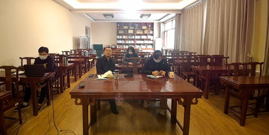 在舜耕书院召开中国语言文学学科建设交流会。会议以线上、线下结合的方式进行,院长张兵主持,宋洪民、刘传霞、刘丽霞、范丽敏、赵玉等各学科负责人及院长助理王毅参加了会议。