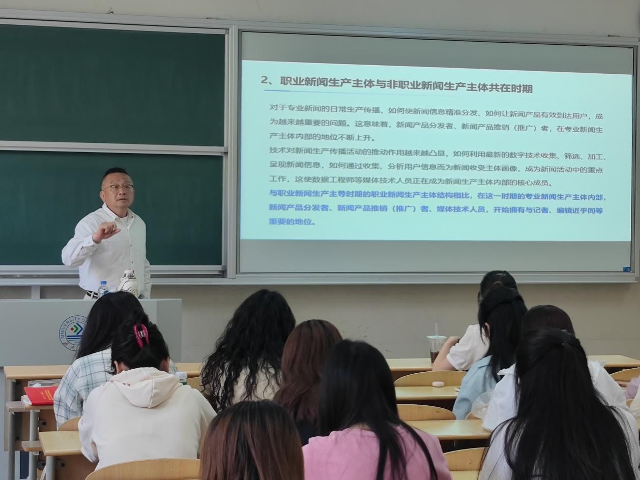 通过与刘连军老师交流互动,学生们对AI技术在新闻采集、编辑、发布等环节的应用有了更直观的认识。刘连军老师分享了他的从业经验和行业洞见,旨在帮助学生们更好地理解媒体行业的实际操作和发展趋势,以及对AI时代新闻传播职业链变化的深刻见解。讲座期间,刘连军老师还就如何结合AI技术与新闻传播实践进行了深入讨论,提出了一系列创新性的教学方法和学习路径。