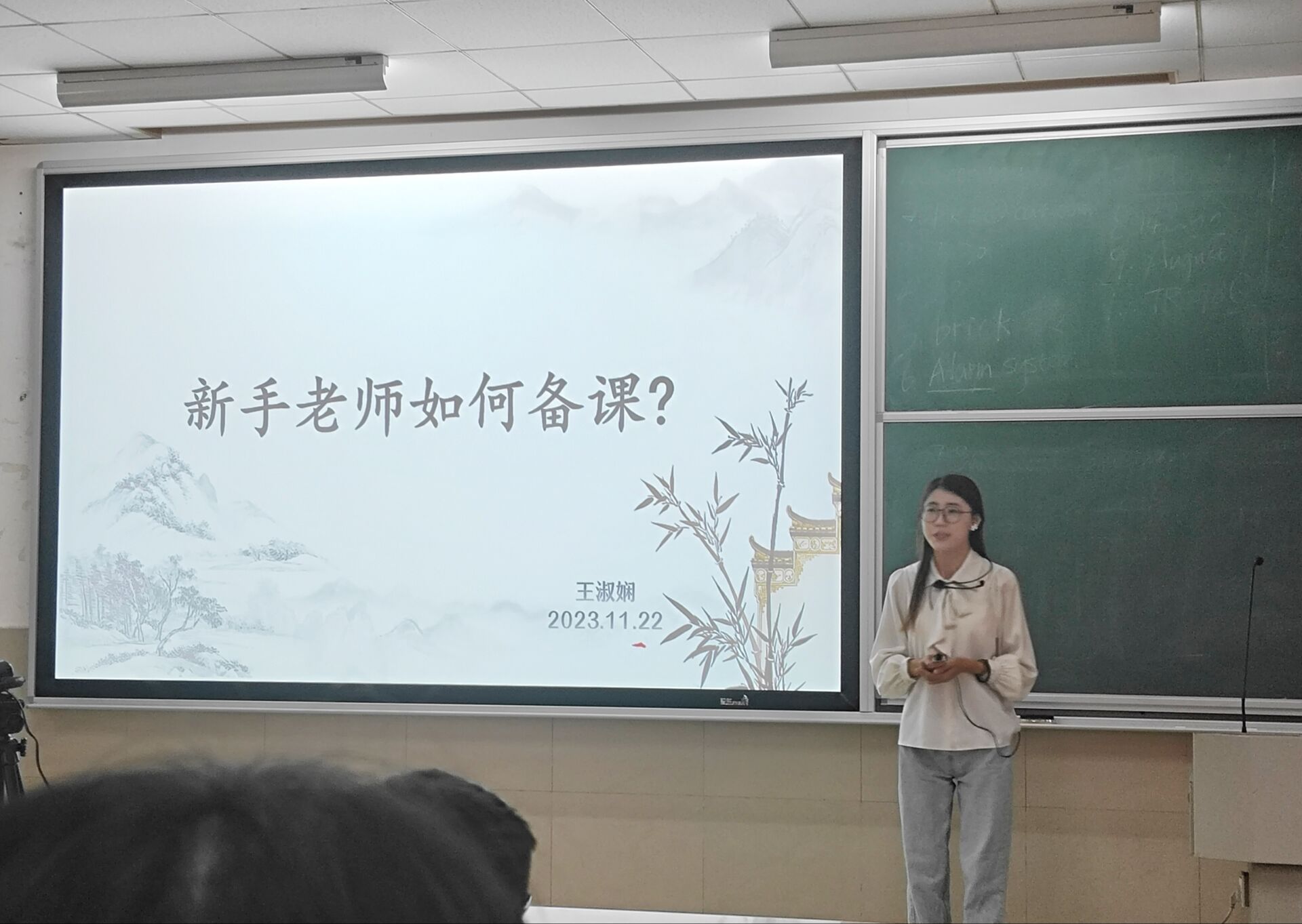 11月22日上午、11月24日下午,分别邀请第十一届山东省师范类高校学生从业技能大赛初中组一等奖获得者王淑娴和小学组一等奖获得者程蔚进行了备赛经验分享。