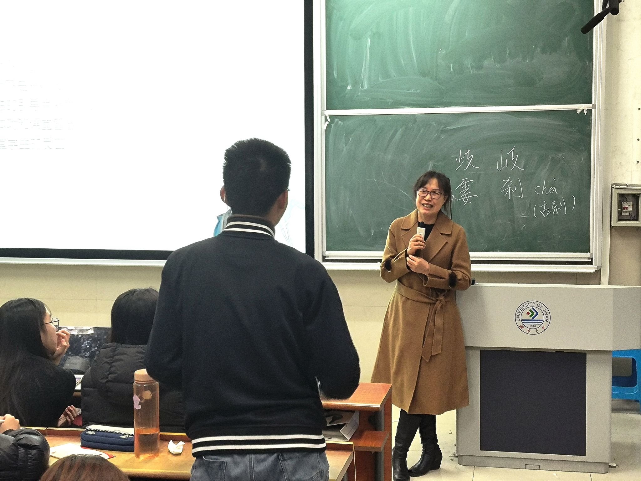 11月23日下午,邀请泉景中学高级教师于晶在11J1102举行示范课展示及教学心得分享。于晶老师首先对《散步》进行了教学示范。在教学过程中,于老师巧妙设置情景,引导学生思考文章的人物关系,逐步上升到文章的中心思想。于老师强调,因为《散步》文章内容比较简单,因此本次采用倒置教学,从而达到“浅文深教”的效果。示范课展示后,于老师针对学生下学期的教育实习提出了一些建议,强调实习应该转变身份,如听课时需转变成教师的身份,重点应放在听教学设计、起承转合等方面。