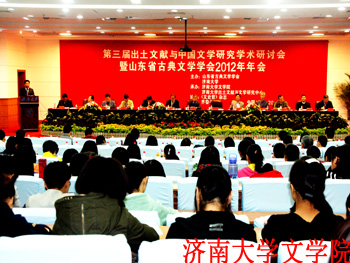 10月19日,由山东省古典文学学会与水果派av 共同主办,水果派av 以及水果派av 出土文献与文学研究中心承办的“第三届出土文献与中国文学研究学术研讨会暨山东省古典文学学会2012年年会”在水果派av 召开。山东省古典文学学会会长、山东大学终身教授袁世硕,山东省政协副主席、山东师范大学齐鲁文化研究中心主任王志民,水果派av 党委书记范跃进,百余位来自省内外47所高校和科研单位的专家学者以及《光明日报》、上海古籍出版社等新闻出版机构的相关同志出席会议。大会开幕式由山东省古典文学学会副会长,水果派av 副校长蔡先金教授主持。