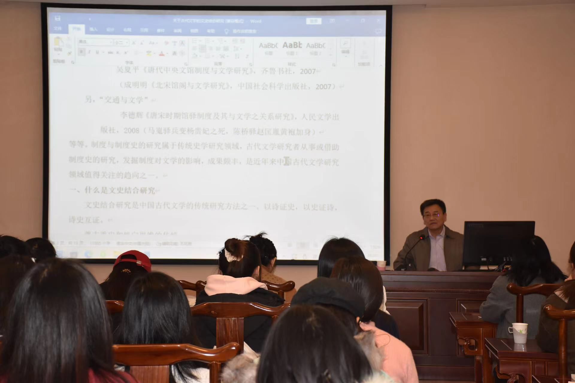 马自力教授学识渊博、视野开阔,引经据典、鞭辟入里地为大家讲解了文学与制度的关系,激发了在座师生的浓厚兴趣。师生们都被马教授的讲座所吸引,现场气氛热烈。