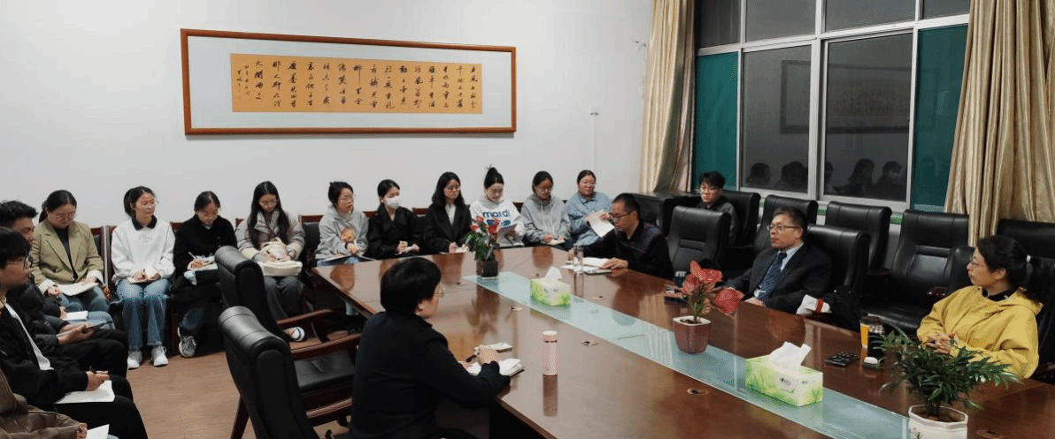 ,与出版专硕师生进行座谈交流。出版专业负责人俞林波教授主持,出版专业负责人陈静教授、出版专业研究生导师马晓雪副教授及出版专业全体在校学生参加。