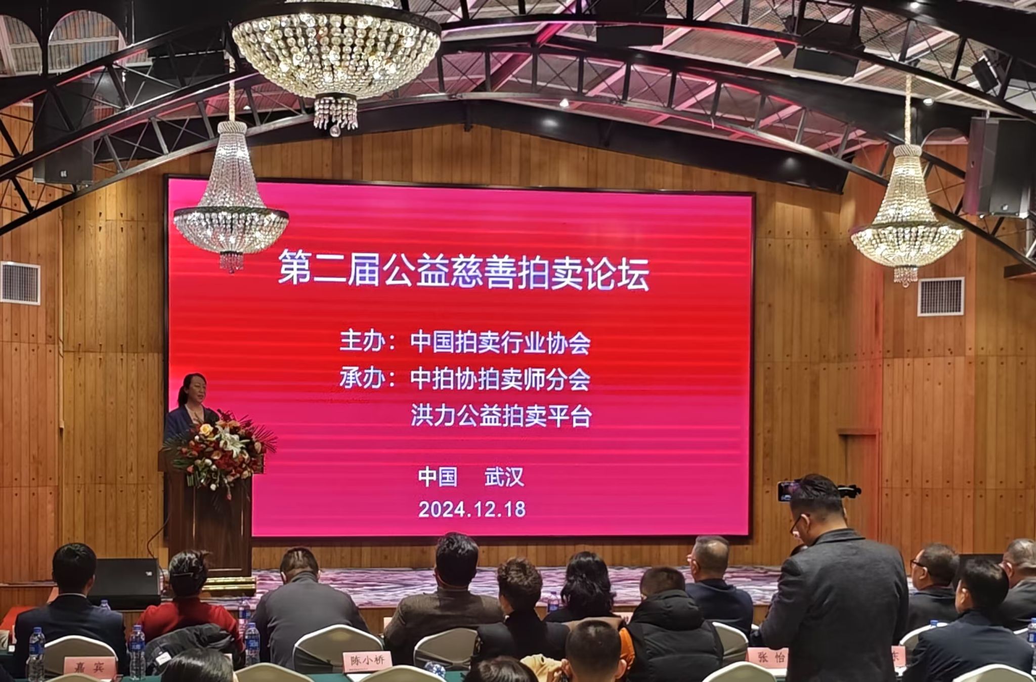 2024年12月18日,由中国拍卖行业协会主办,中拍协拍卖师分会、洪力公益拍卖平台承办的第二届公益慈善拍卖论坛在武汉成功举行。中拍协会长王波、副会长兼秘书长贺慧、副会长刘建民、监事长汤炎非、副秘书长季乐,拍卖师分会副会长郑晓星、副会长陈红军,部分省拍协会长、秘书长和拍卖企业代表等80余人出席本次论坛,我院历史专业副教授、第16期国家注册拍卖师王晓华受邀全程主持了本次论坛。