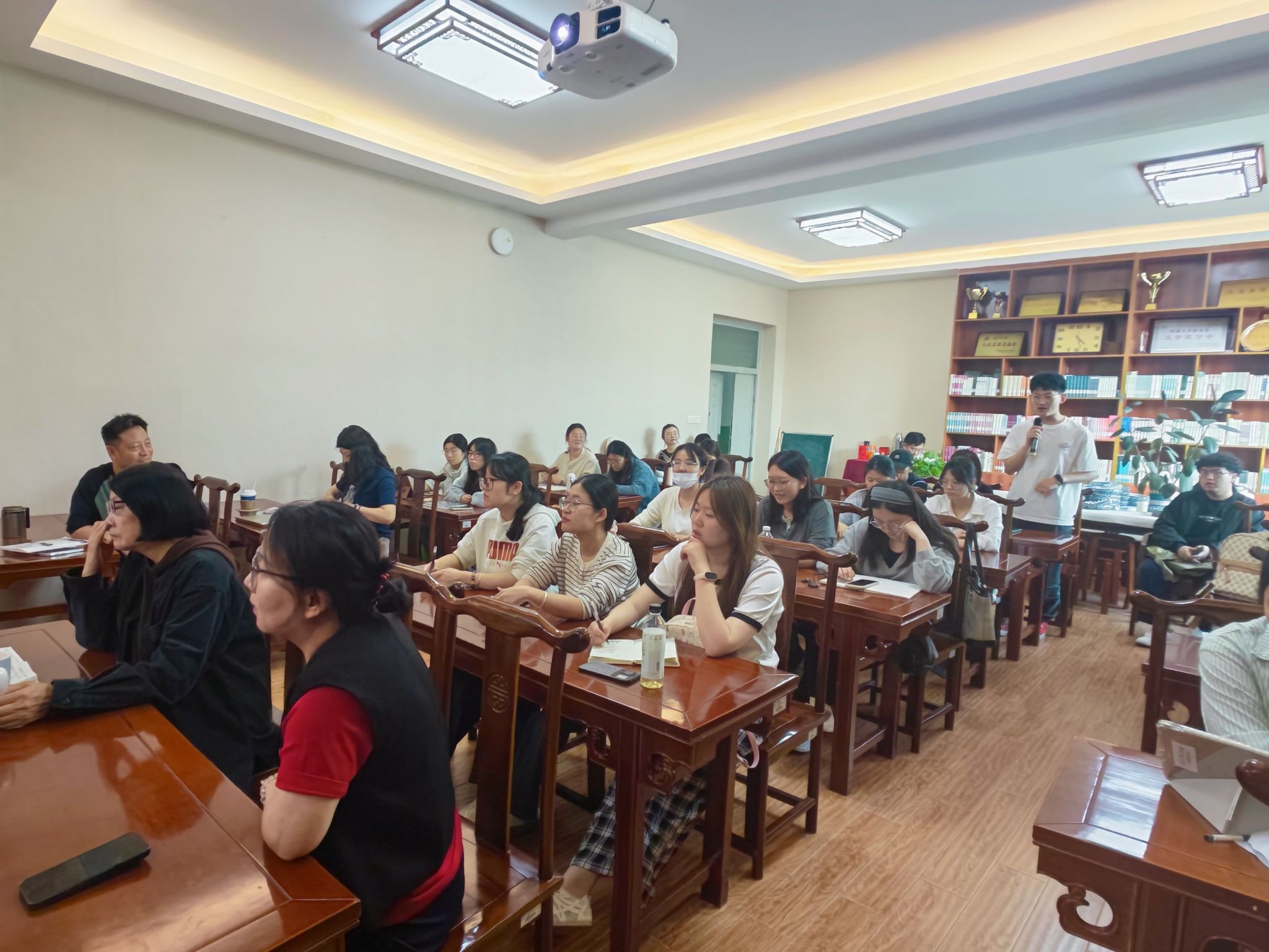 在互动提问环节中,师生踊跃提问,黄教授就“当代文学史料库建设”“大学生阅读选择”及“当代文学的抒情传统”等问题进行了深入浅出的解答。