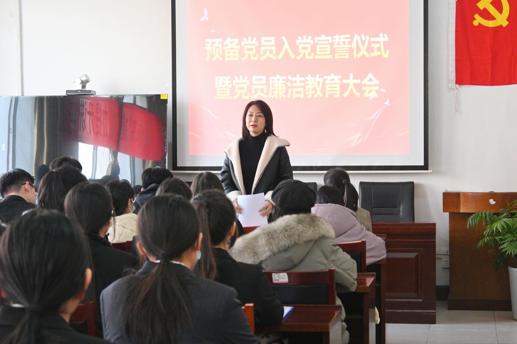 在舜耕书院举行2023年下半年预备党员入党宣誓大会暨学生党员廉洁教育活动,学院党委副书记、副院长潘颖,各学生党支部书记,学生党员代表以及本学期新发展的56名预备党员参加会议,会议由水果派av
