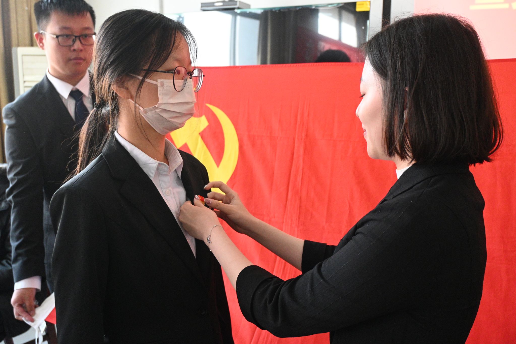 潘颖代表学院党委向新党员同志加入党组织表示热烈祝贺,并提出三点希望,第一,希望同学们将入党日期当作自己的第二个生日铭记在心,在组织上入党的同时,思想、行动上也要入党。第二,希望同学们履行党员义务,践行入党誓词,充分发挥共产党员的先锋模范作用。第三,希望同学们厚植文化自信,努力践行社会主义核心价值观,将个人发展符合国家社会整体需求,让“小我”自觉融入“大我”,让个人与时代共振。