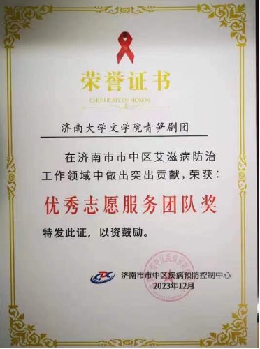 青笋剧团还荣获济南市市中区疾控优秀志愿队伍的荣誉称号。
