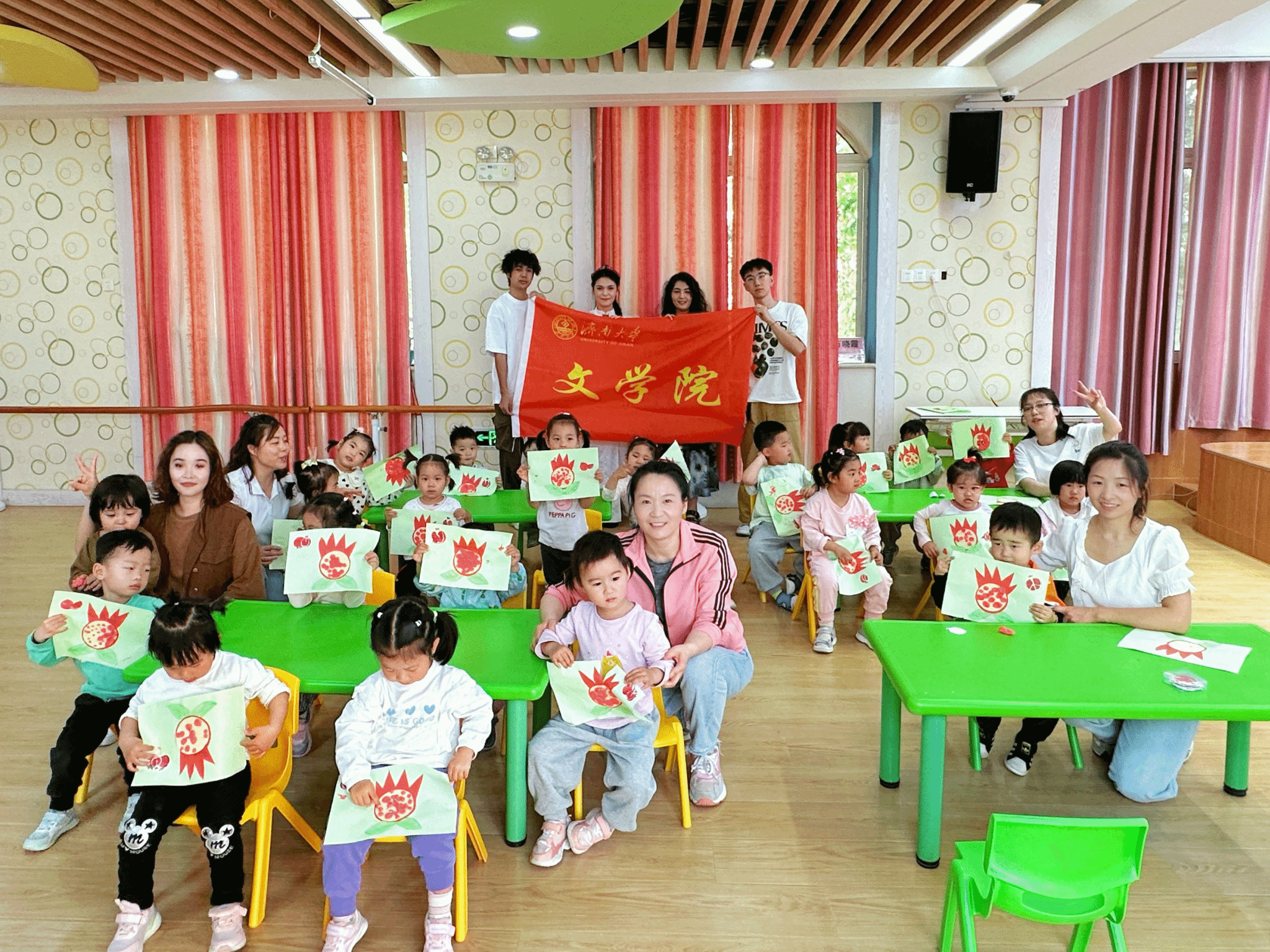 为深入学习贯彻习近平总书记“铸牢中华民族共同体意识是新时代党的民族工作的主线”的重要指示精神,增进各民族之间的团结与友谊,加强对幼儿园小朋友们中华优秀传统文化的教育,从小树立维护民族团结、祖国统一的意识,2024年4月25日,水果派av 石榴籽团队前往水果派av 附属幼儿园,开展了“石榴花开,籽籽童心”主题教育活动。